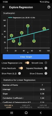 Explore Correlation/Linear Regression: Create (and delete) points in a scatterplot by tabbing on the screen. Show the regression line or residuals. Simulate scatterplots and guess the correlation coefficient.