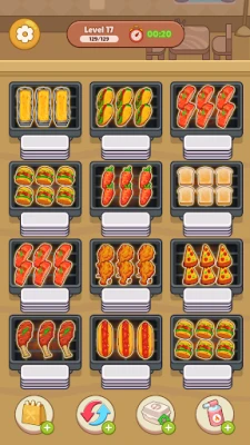 - Match & Grill: Swap and align three identical skewers to clear them from the grill.
