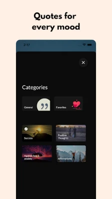 Benefit from quotes for every situation: - Read quotes that guide you on your way to success - Get positive energy with the category "Positivity" - Feel better with affirmations - Relief stress by reading quotes against fear & anxiety