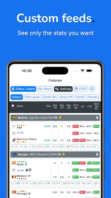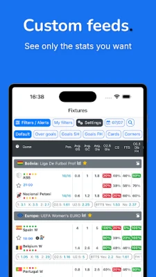 Get easy to read football stats and live scores in same app. Goals, corners, cards, HT, FT, referee stats, you can find all this in the app.