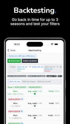Backtesting - Test your filters based on past seasons results. You will know if your filter will be profitable.