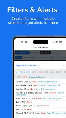 Custom Alerts - Receive alerts when certain filters meet criteria. E.g. odds for over 2.5 goals is 2.00