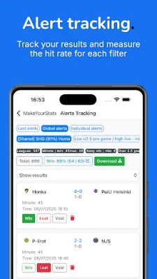 Favourite Games - Choose your games to follow and get instant notifications for every event (goals, corners, cards, substitutions, VAR, etc.). You can group your games by betting lists, so you know what you are looking for in a certain game.