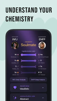► 🤍 Self-Discovery Tools: Utilise frameworks like MBTI, cognitive functions, Big 5 traits, and Enneagram to understand your unique personality. Our compatibility algorithms ensure meaningful connections.