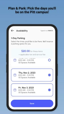 3. Discover & Reserve: Locate and book parking spaces in select lots throughout the campus, making your journey to class or meetings smoother than ever.