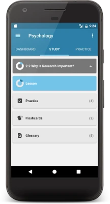 College Psychology Study App - Lessons, Quizzes, Flashcards, Glossaries