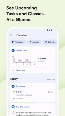 Writing down homework, assignments, exams and reminders is simple and fast and daily notifications will help you never forget anything. The built-in calendar is highly optimized for the needs of students and allows you to manage your events and activities more easily.