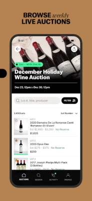Get access to the most famous & extremely rare bottles of: - Bourbon - Scotch - Japanese Whisky - French Wine - & Much More! The Unicorn Auctions app is a full-service marketplace to buy and sell rare spirits, where you can preview, watch and bid in our auctions from anywhere in the world. The app allows you to: - register easily - follow the bottles you're interested in - get notifications when there is action on your bottles - track bidding history and activity - buy the rarest spirits in the world
